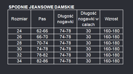 * Tabela jest poglądowa, nie może stanowić podstawy do reklamacji produktu.