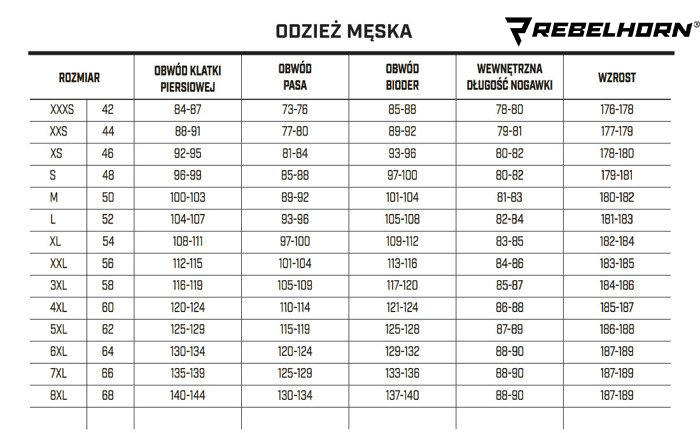 Tabela rozmiarów jest poglądowa nie może stanowić podstawy do reklamacji.