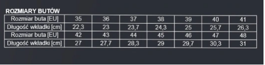 *Tabela rozmiarów jest poglądowa, nie może stanowić podstawy do reklamacji produktu.