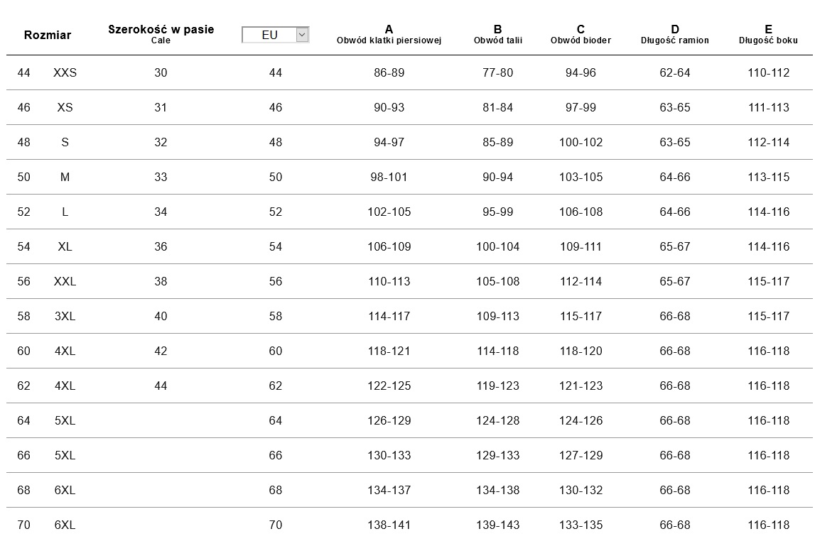 * Tabela jest poglądowa, nie może stanowić podstawy do reklamacji produktu.