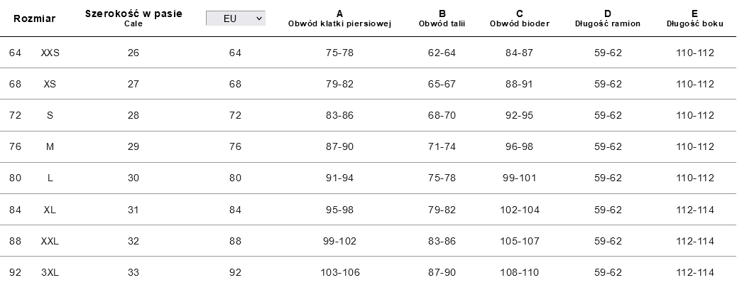Tabela rozmiarów jest poglądowa nie może stanowić podstawy do reklamacji.