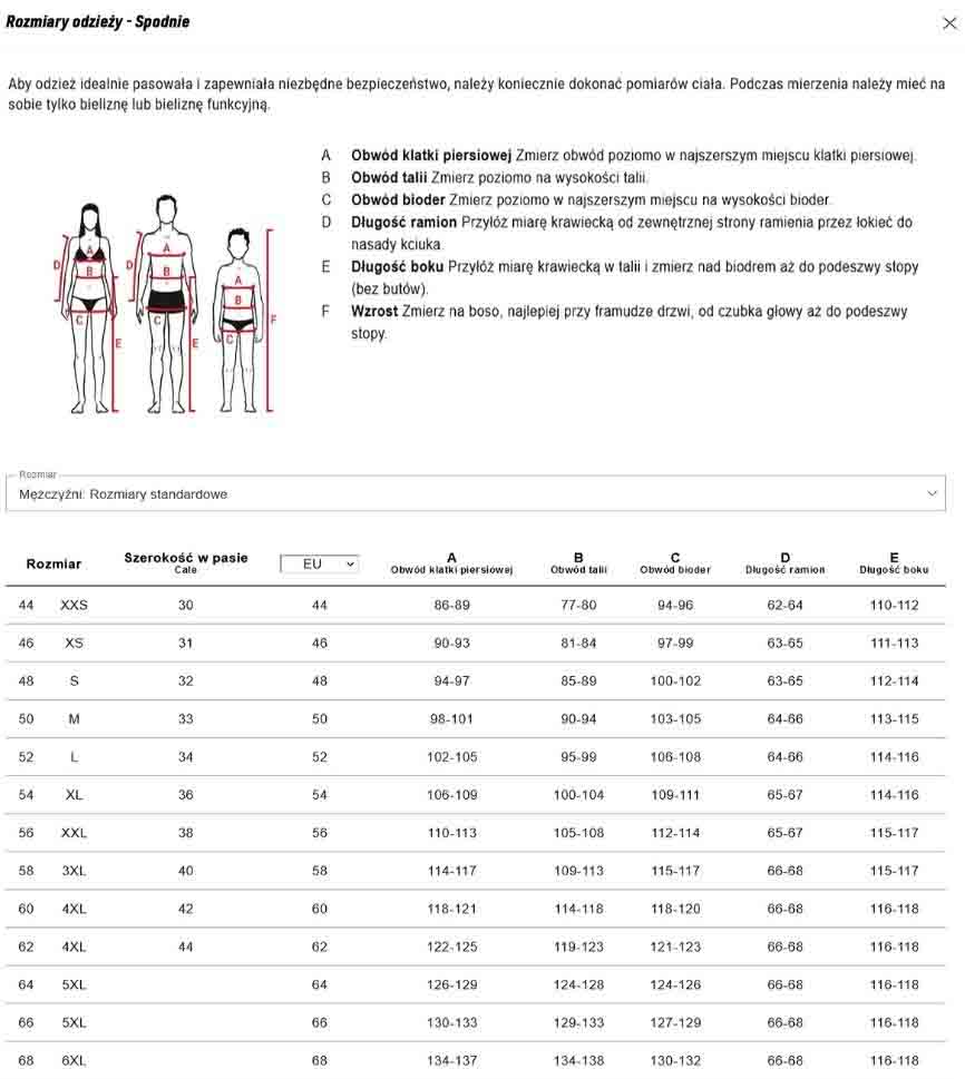 * Tabela jest poglądowa, nie może stanowić podstawy do reklamacji produktu.