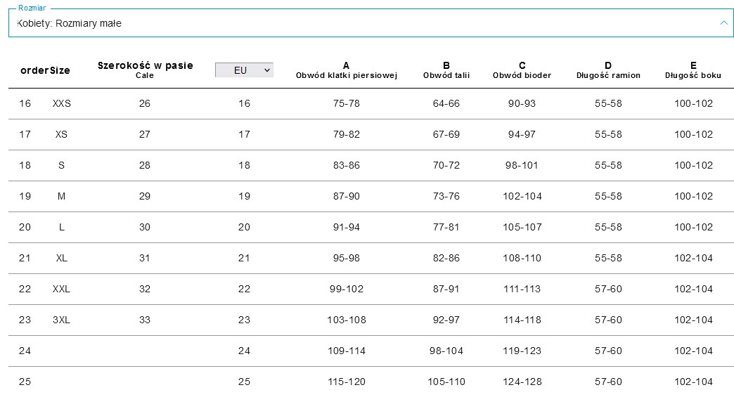 * Tabela jest poglądowa, nie może stanowić podstawy do reklamacji produktu.