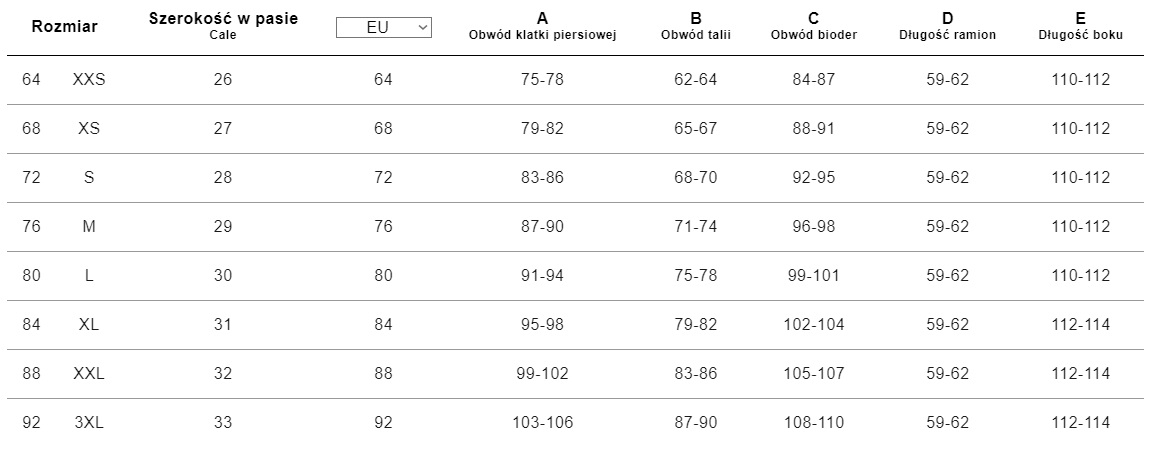 *Tabela rozmiarów jest poglądowa, nie może stanowić podstawy do reklamacji produktu.