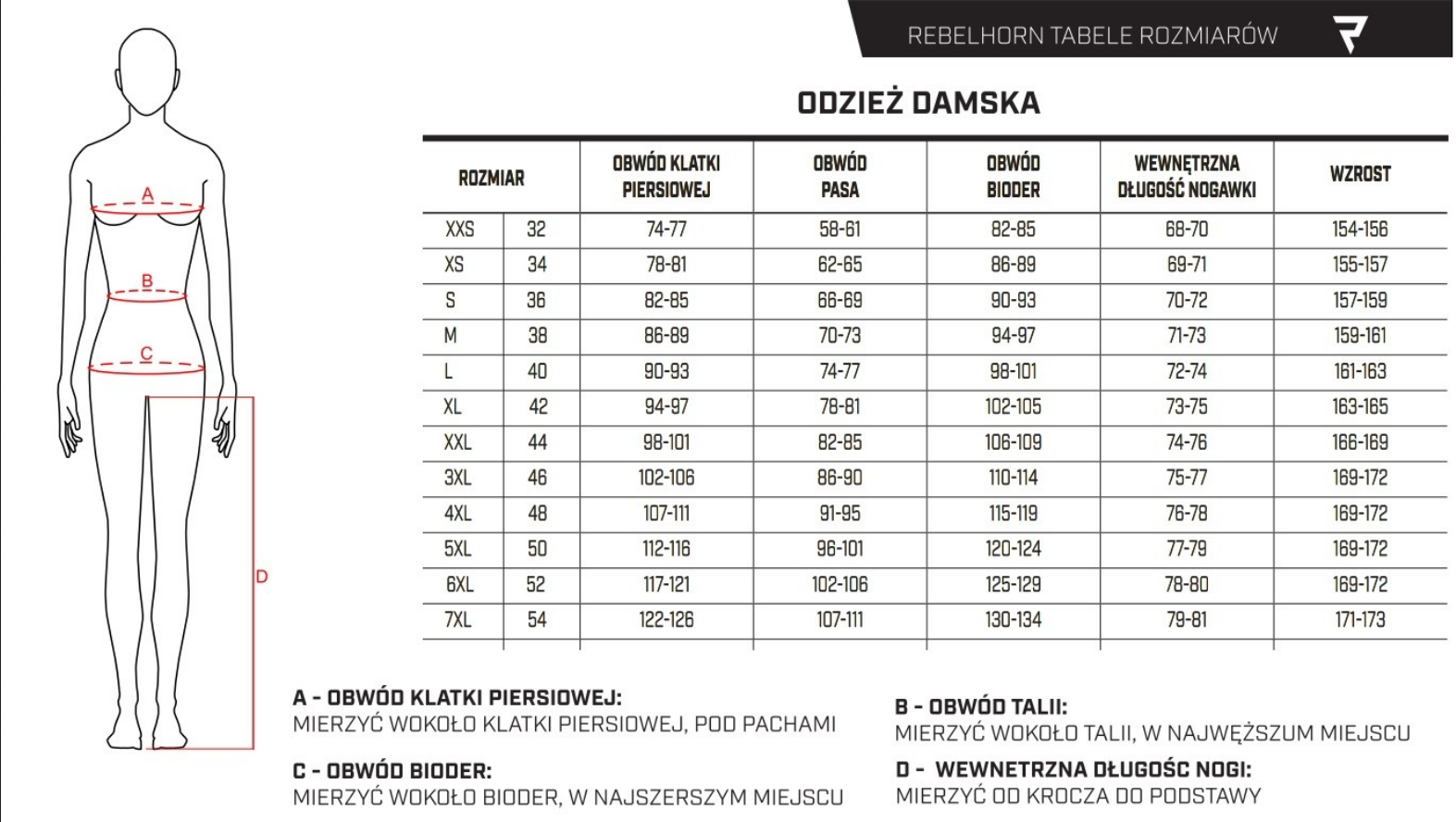 * Tabela jest poglądowa, nie może stanowić podstawy do reklamacji produktu.